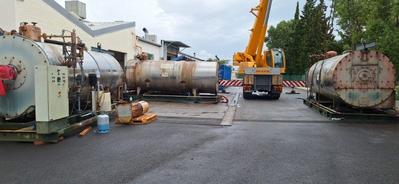 La première phase du chantier a consisté à démonter et évacuer l’ancienne chaudière vapeur en respectant strictement les protocoles de sécurité propres aux installations industrielles. Cette étape a été planifiée de manière à limiter l’impact sur l’activité du site et garantir un environnement de travail sécurisé pour les équipes techniques.